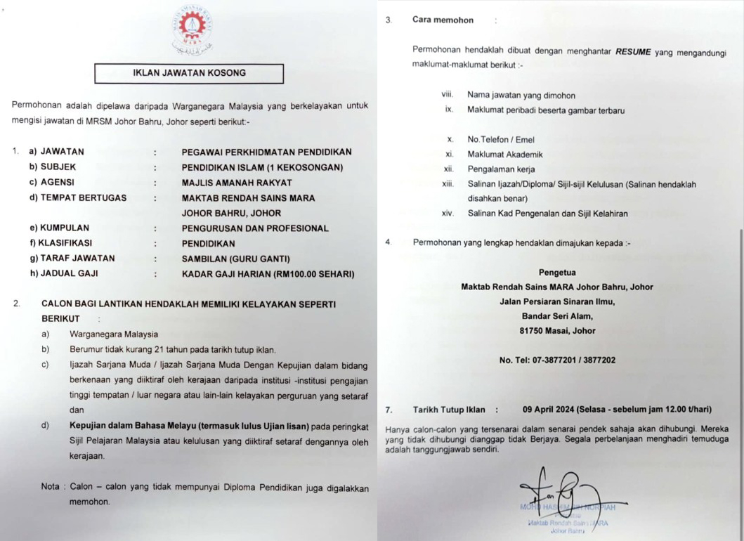 - Pastikan anda memenuhi kriteria yang dinyatakan dalam iklan jawatan.